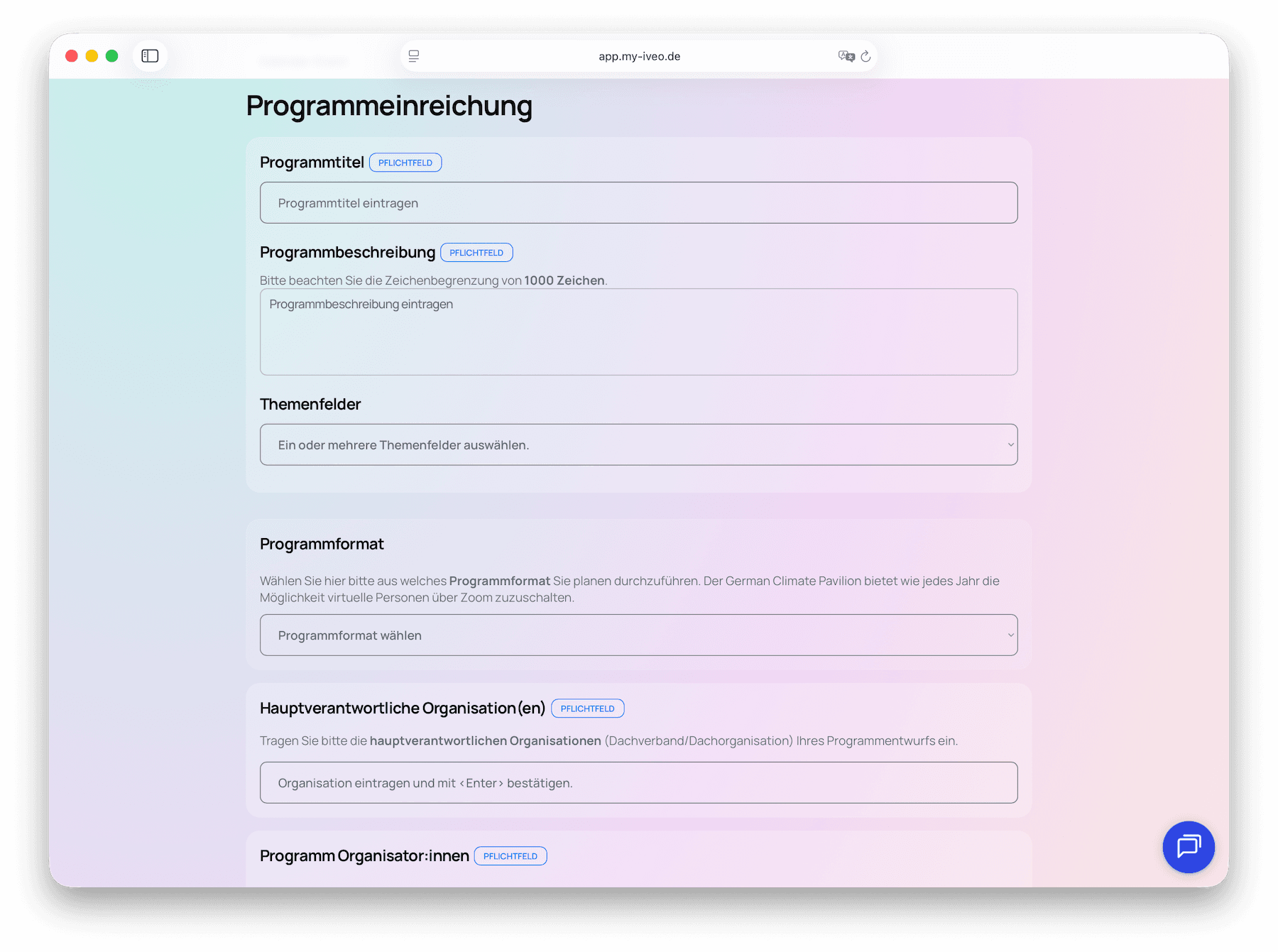 Eingabeformular für neue Programmeinreichungen