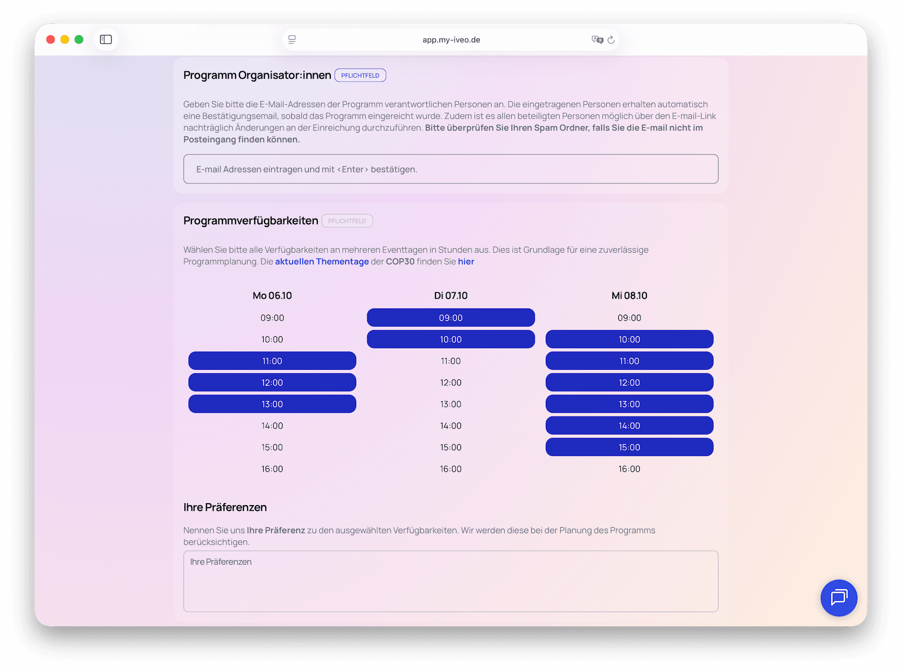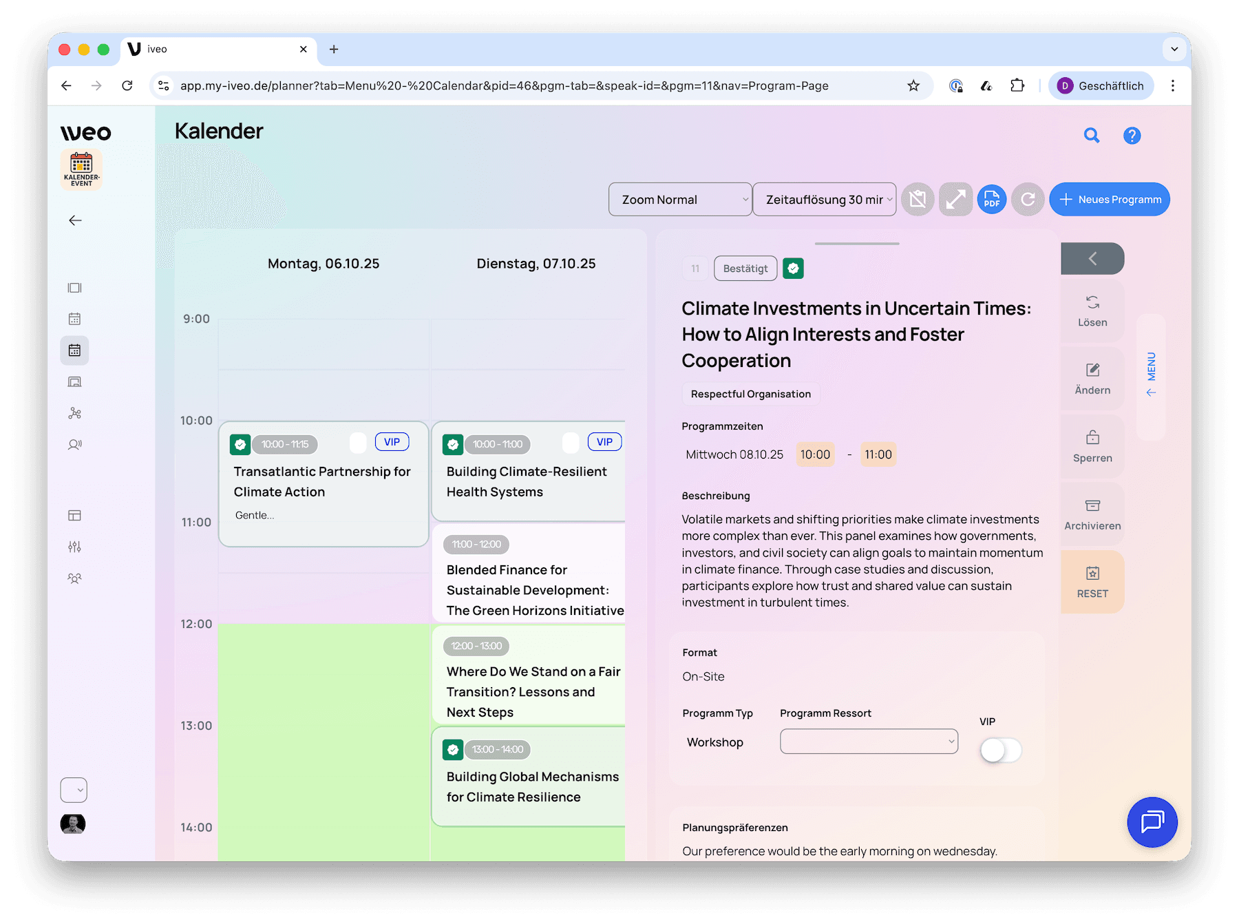 Bei iveo glauben wir, dass gute Programme durch Zusammenarbeit entstehen – wenn Speaker:innen, Partner:innen und Teams ihre Inhalte direkt in die Planung einbringen können.